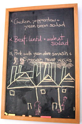 I'm sure Nephew Aidan won't mind me sharing his picture that he drew with chalk on my menu board. I am being a proud aunt, of course, but I love it. I said that it was very much in the spirit of L.S. Lowry of whom I am a big fan. He replied with a grin, "I know; that's why I did it".