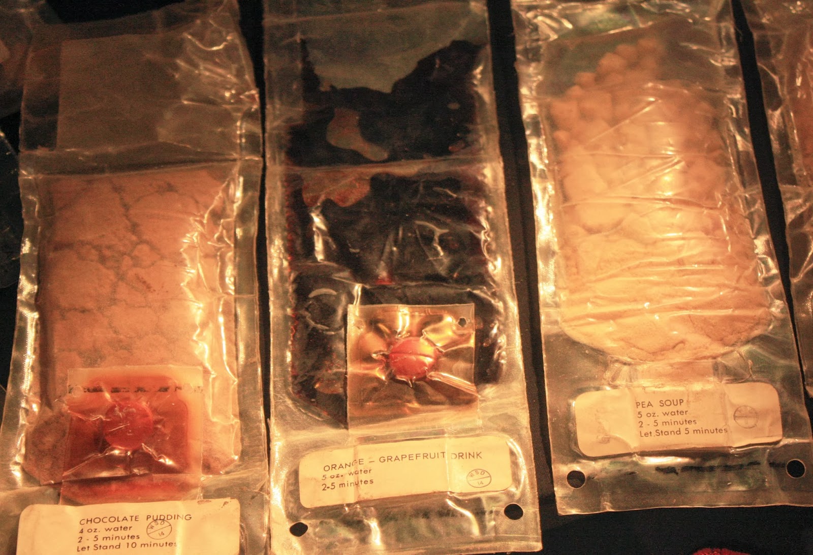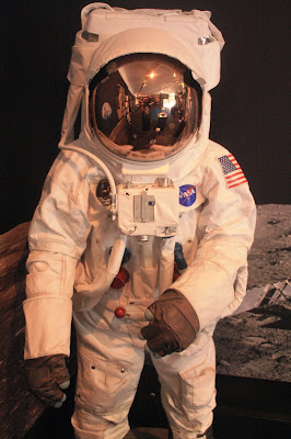 I was particularly interested in the personal effects, such as the tootbrushes and the food. Clearly the basic functions of eating, washing, and cleaning your teeth take on different complexites without gravity. There was an example of toiletry facilities that I was non too keen to experience, and the pea soup didn't look particularly appetising either. I did, of course, try on the space suit though!
