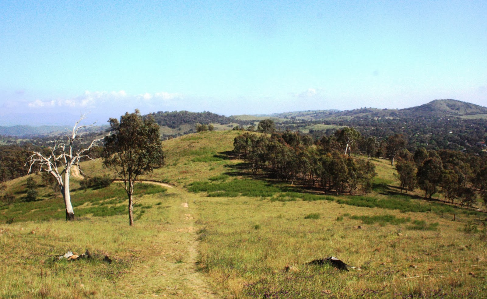This is my morning/ evening run/ walk on the hill out the back of our house. Not bad, really, is it?